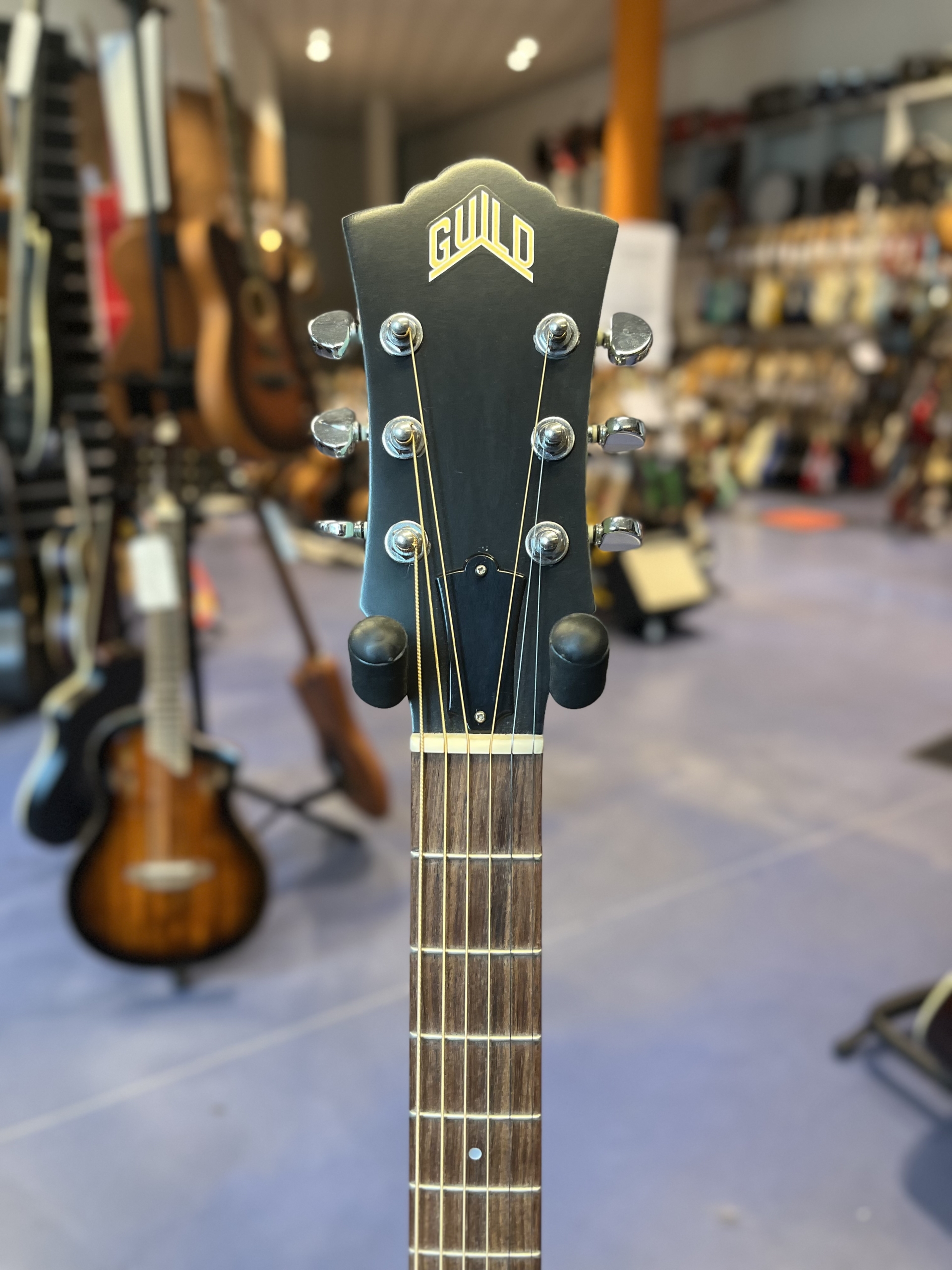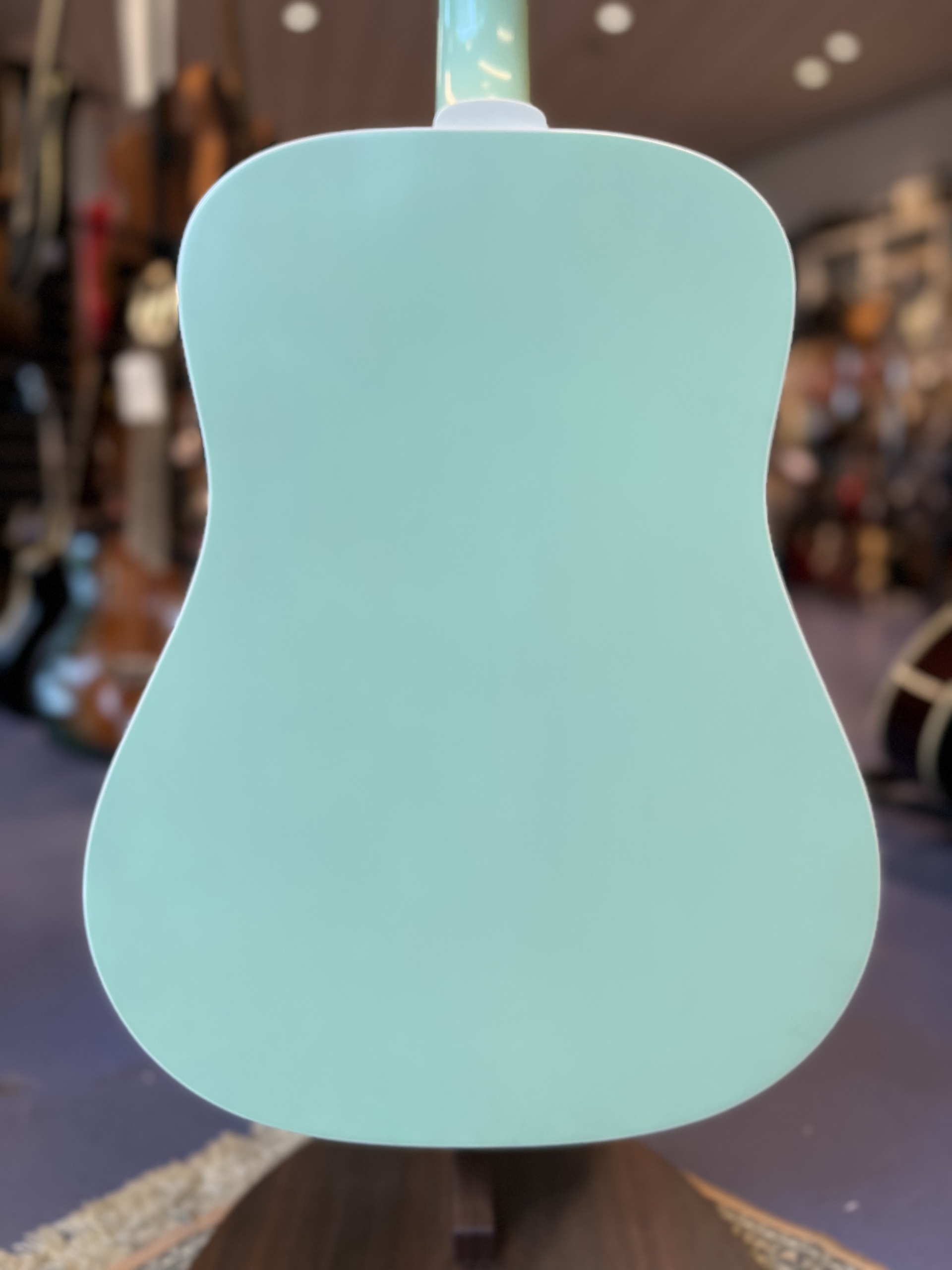 Die Guild D-25MT ist eine echte Besonderheit: vollmassiv, „Made in USA“, mit starkem Vintage-Vibe und mintgrünem Look. Klanglich direkt, optisch ein Statement – perfekt für Bühnen, Studios oder Sammlungen mit Charakter.