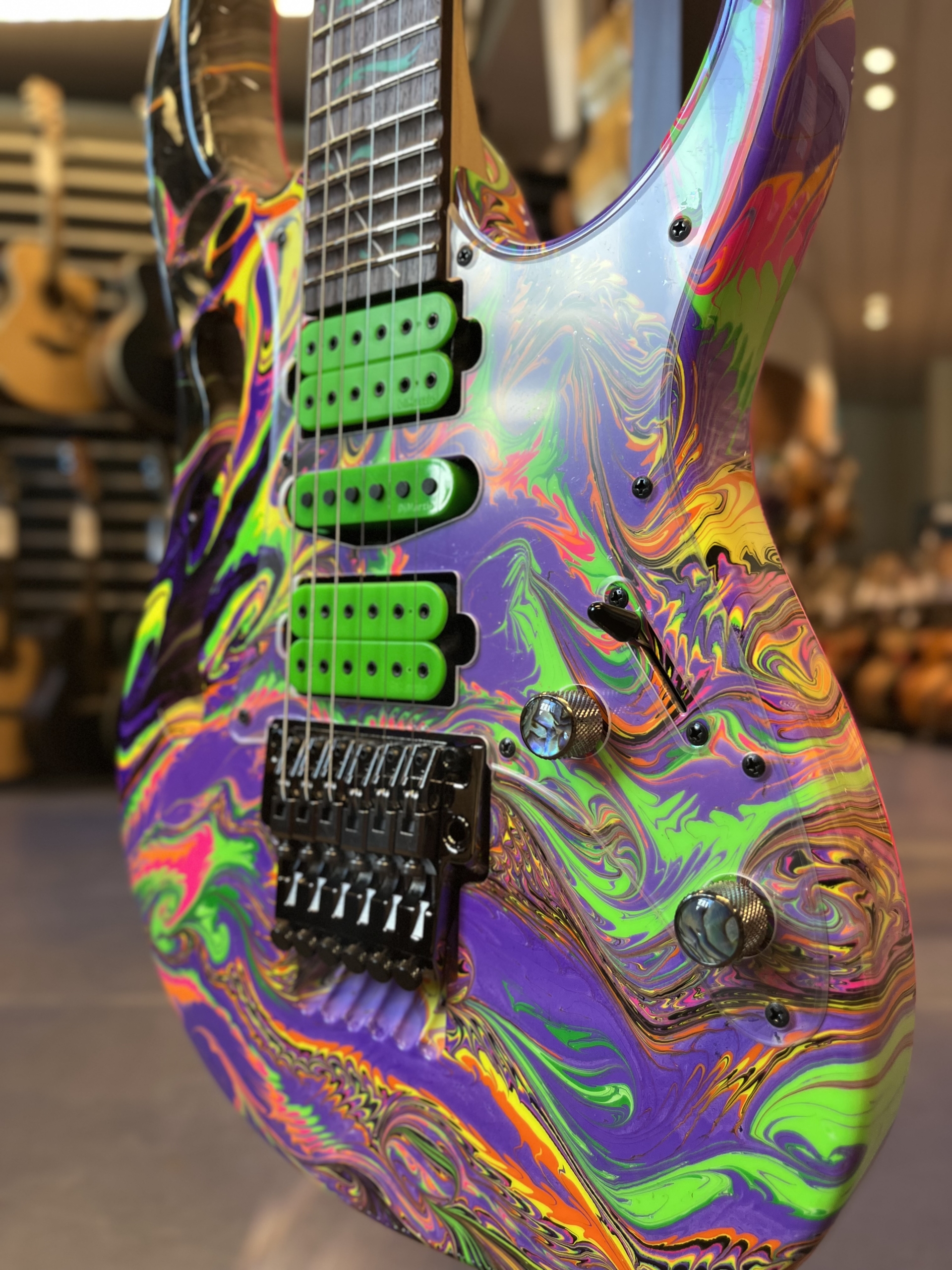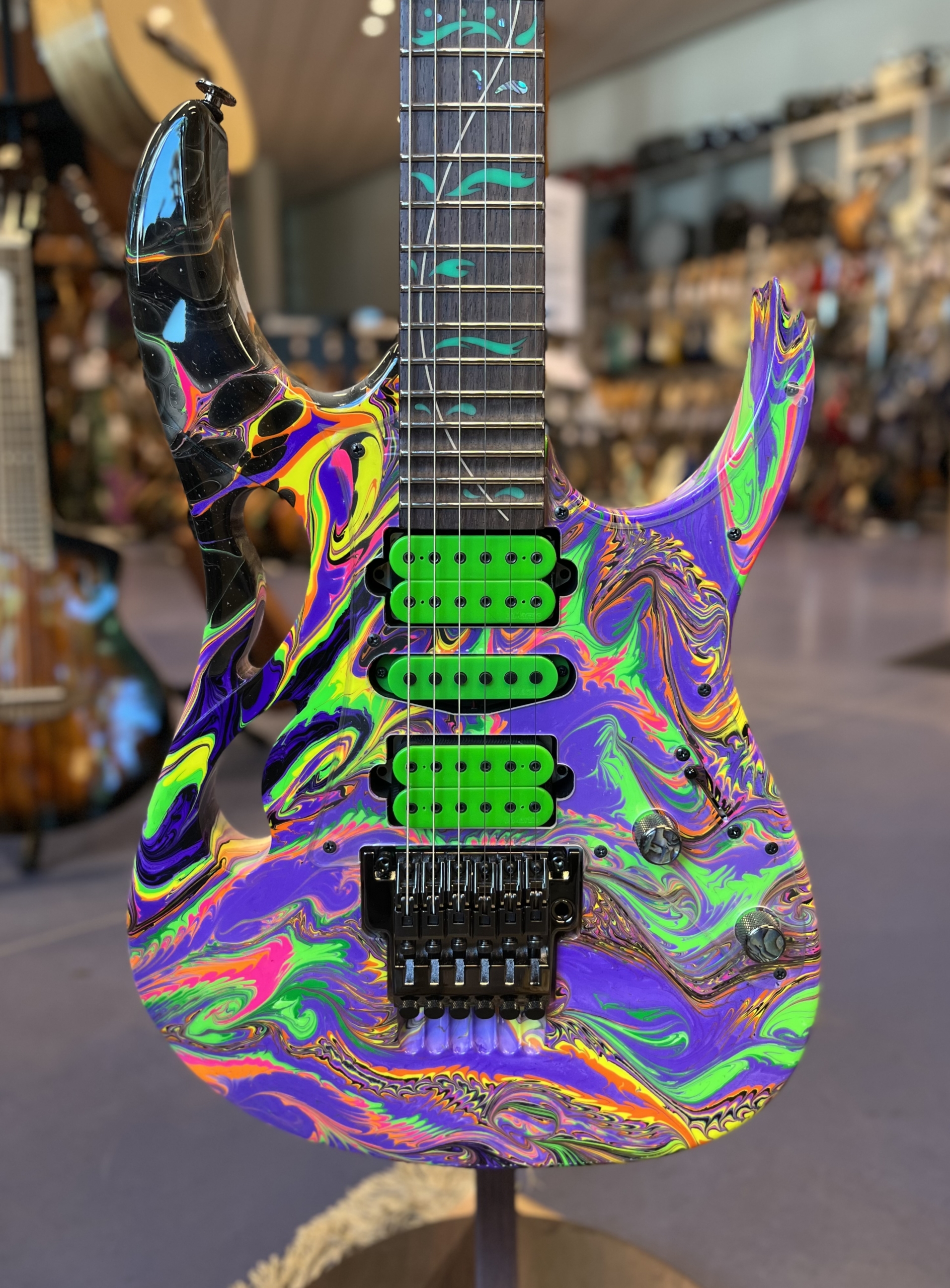 Die neue PIA77BON ist ein limitiertes Steve Vai Signature-Modell von Ibanez. Es erinnert an die 35-jährige Partnerschaft zwischen Steve Vai und Ibanez. Die PIA77BON hat ein auffälliges Multicolor-Swirl-Finish, das in einem neu entwickelten Verfahren hergestellt wird. Dieses Verfahren wurde noch nie zuvor bei einem Ibanez-Produktionsmodell verwendet. Steve hat persönlich die Farbpalette und die Swirl-Muster für dieses neue Finish ausgewählt. Steve Vai ließ sich bei der Gestaltung der PIA77BON von seinen früheren Ibanez JEM- und UV-Modellen mit Swirl-Finish inspirieren, wollte aber auch etwas Frisches und Neues schaffen. Das neue Finish, von ihm ‚Brilliance of Now (BON)‘ genannt, macht dieses Jubiläumsmodell zu einer ganz besonderen Ergänzung von Steves Ibanez-Signaturmodellreihe.